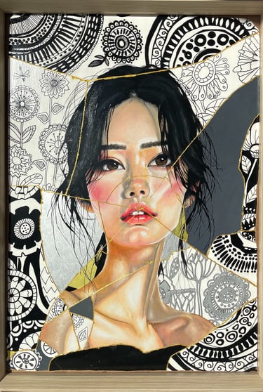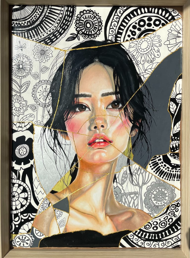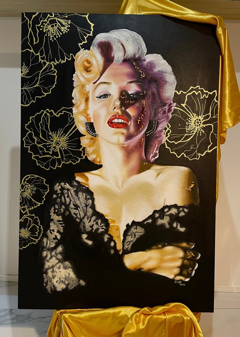 FLUID PAINTING, GOLDEN DETAILS, AND CRAQUELÉ. THE FRACTURES ON HER FACE REVEAL THE FRAGILITY BEHIND THE ICON, TRANSFORMING MARILYN INTO A SYMBOL OF AUTHENTICITY THAT IS STILL RECOGNIZED AND CELEBRATED TODAY.