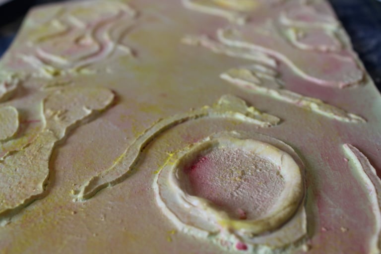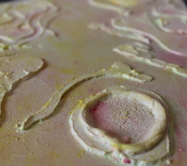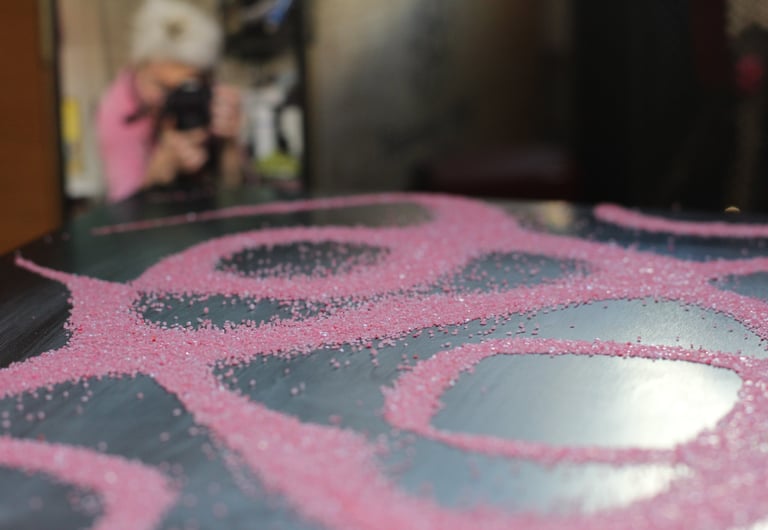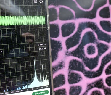Alongside matter, the language of vibration enters the process. Through the analysis of emotional frequencies and sounds connected to emotions—a voice, a laugh, a sound fragment that represents a bond. The forms generated by cymatics become symbols that enter the artwork. The visual translations of emotions, artistically reinterpreted, transform into signs of authentic and unrepeatable personal expression.
