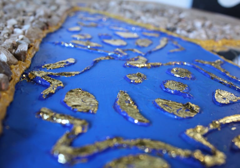 The fragments are then recomposed using resin, gold, plasters, mirrors, and other material elements that invite recognition within the artwork. every crack is enhanced, every imperfection made visible, as happens in the inner process of transformation.