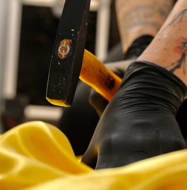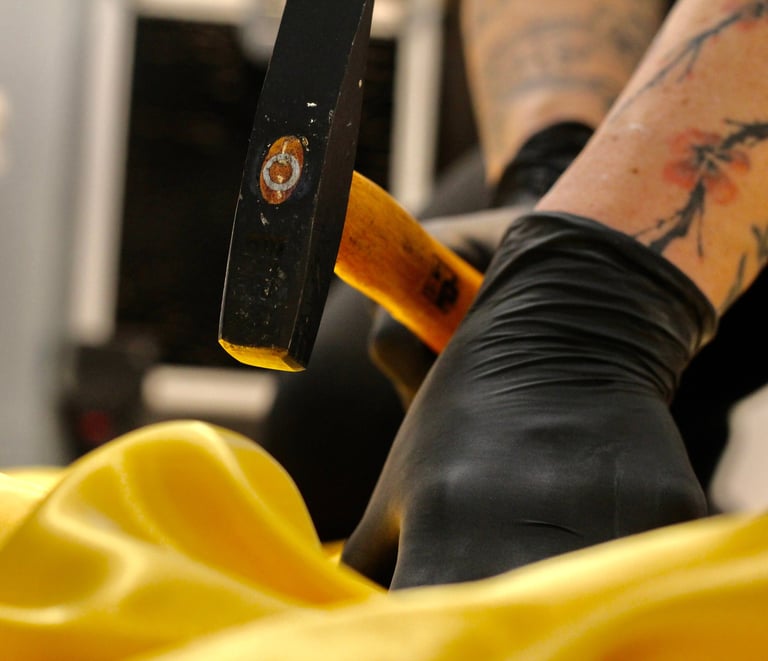in commissioned works, the person is an active part of the experience. when present, they themselves perform the gesture of fracture and recomposition. when the artwork is created at a distance, deep listening to the story guides every phase of the creative process.