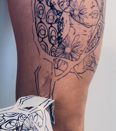 Interventions on skin are part of my artistic research and professional work. each journey is built tailor-made, with respect for the person, their lived experience, and the symbolic value of the experience.