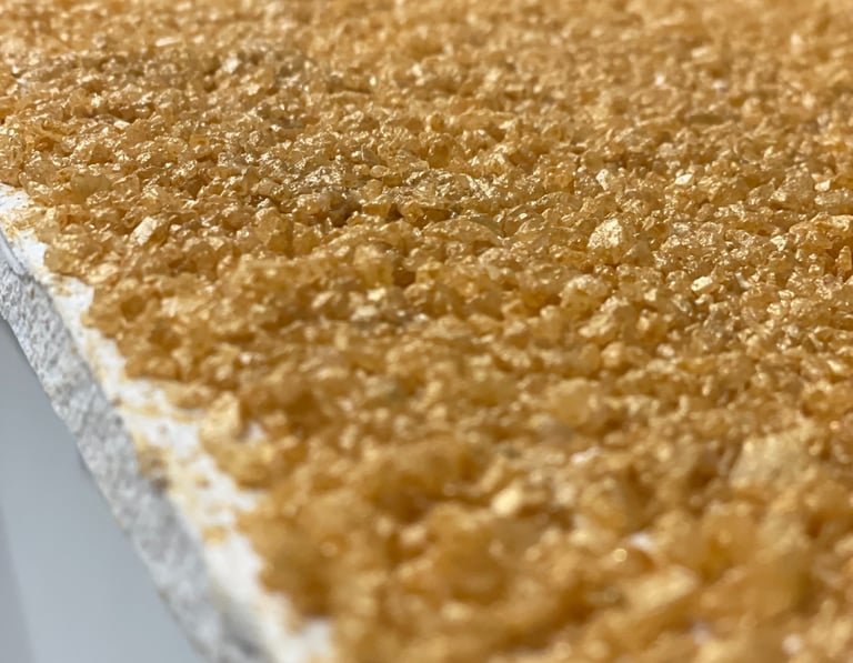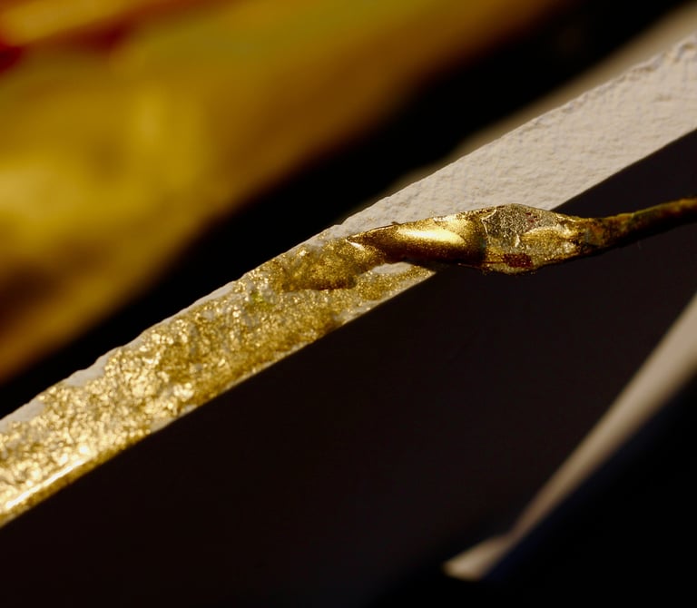 The fragments are then recomposed using resin, gold, plasters, mirrors, and other material elements that invite recognition within the artwork. every crack is enhanced, every imperfection made visible, as happens in the inner process of transformation.