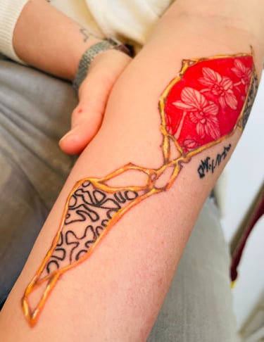 Ogni intervento su pelle nasce dall’ascolto e diventa segno unico di una storia. Questi lavori fanno parte della mia ricerca artistica e trasformano il corpo in spazio d’identità, presenza e consapevolezza. Ogni traccia è irripetibile, costruita nel dialogo con la persona.