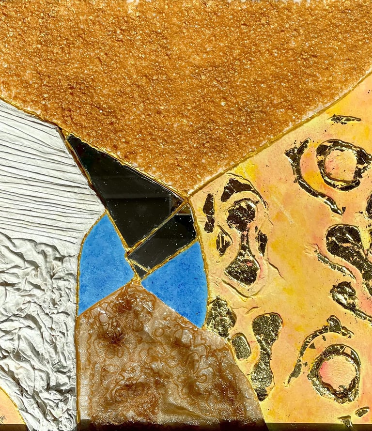 MARMORINA, ACRYLIC, MATERIAL ELEMENTS SUCH AS FABRICS, SALT AND MIRRORS, AND RESIN