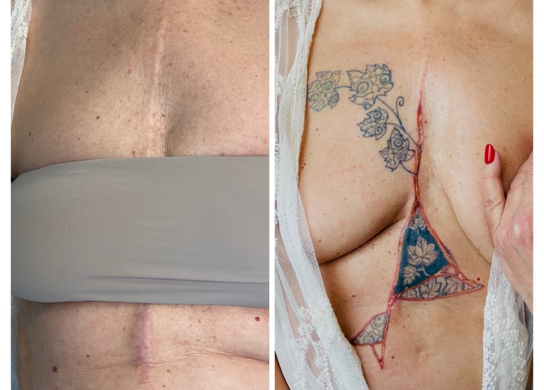 When a scar is present, it is not hidden but welcomed and enhanced through an artistic intervention that highlights its meaning, transforming the wound into a visible trace of strength and awareness.