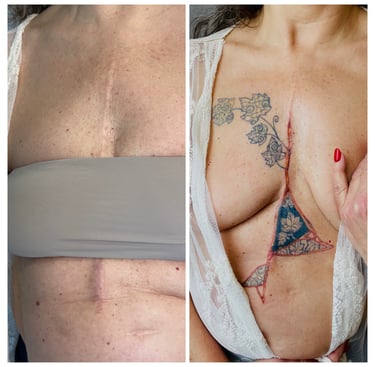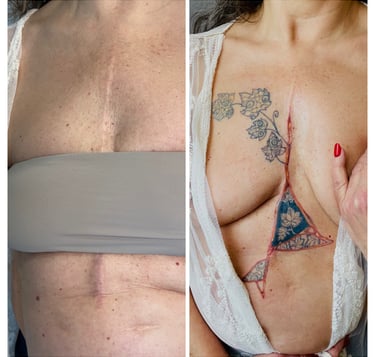 Quando è presente una cicatrice, questa non viene nascosta ma accolta e valorizzata con un intervento artistico che ne evidenzia il significato, trasformando la ferita in traccia visibile di forza e consapevolezza.